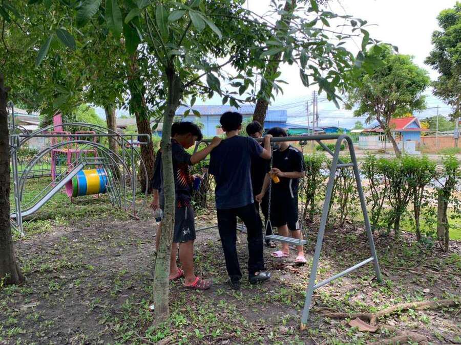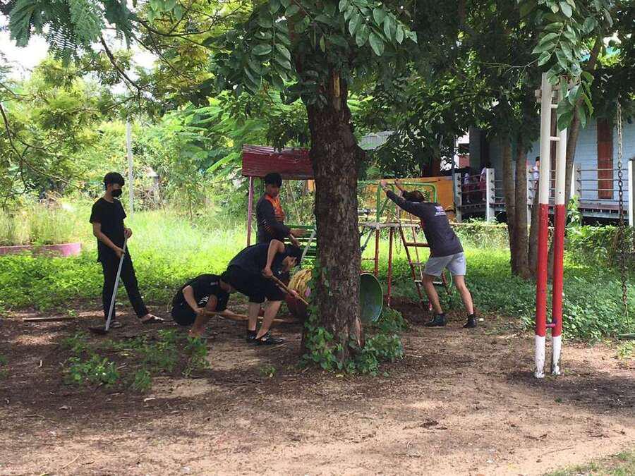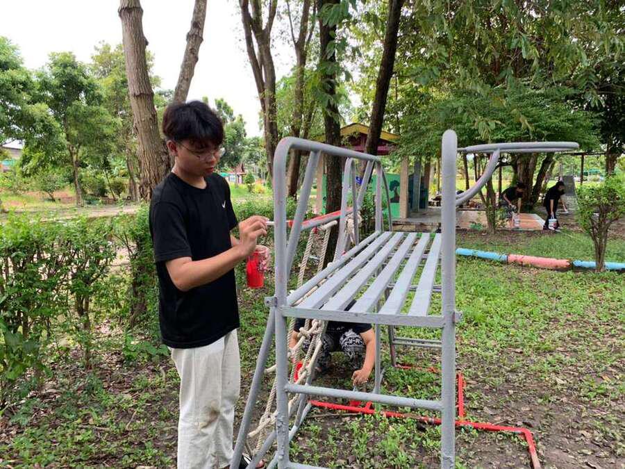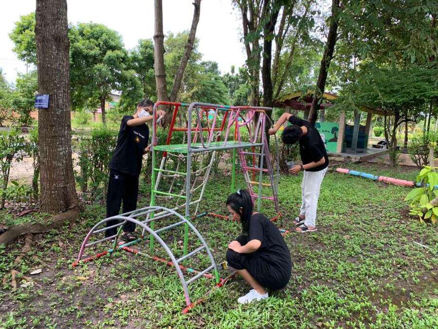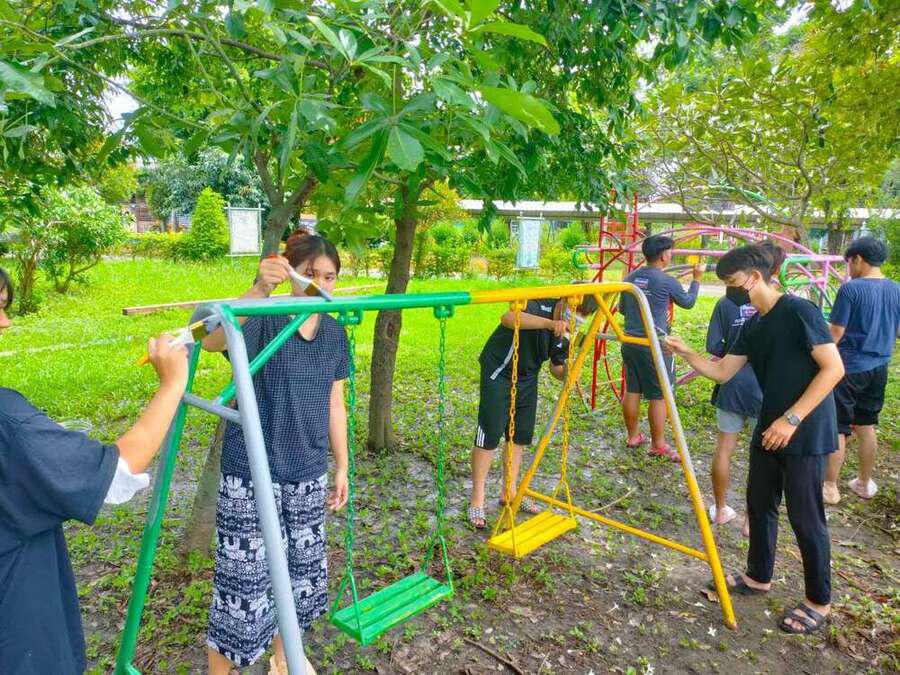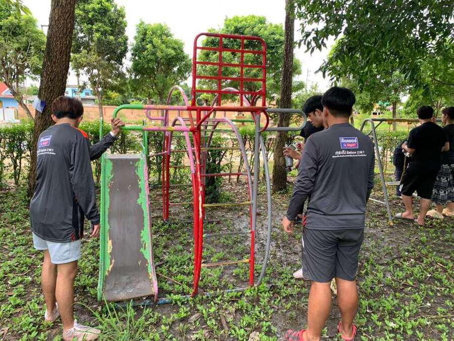 จิตอาสาพัฒนาสนามเด็กเล่น จากมหาวิทยาลัยเทคโนโลยีราชมงคลธัญบุรี คลอง 6