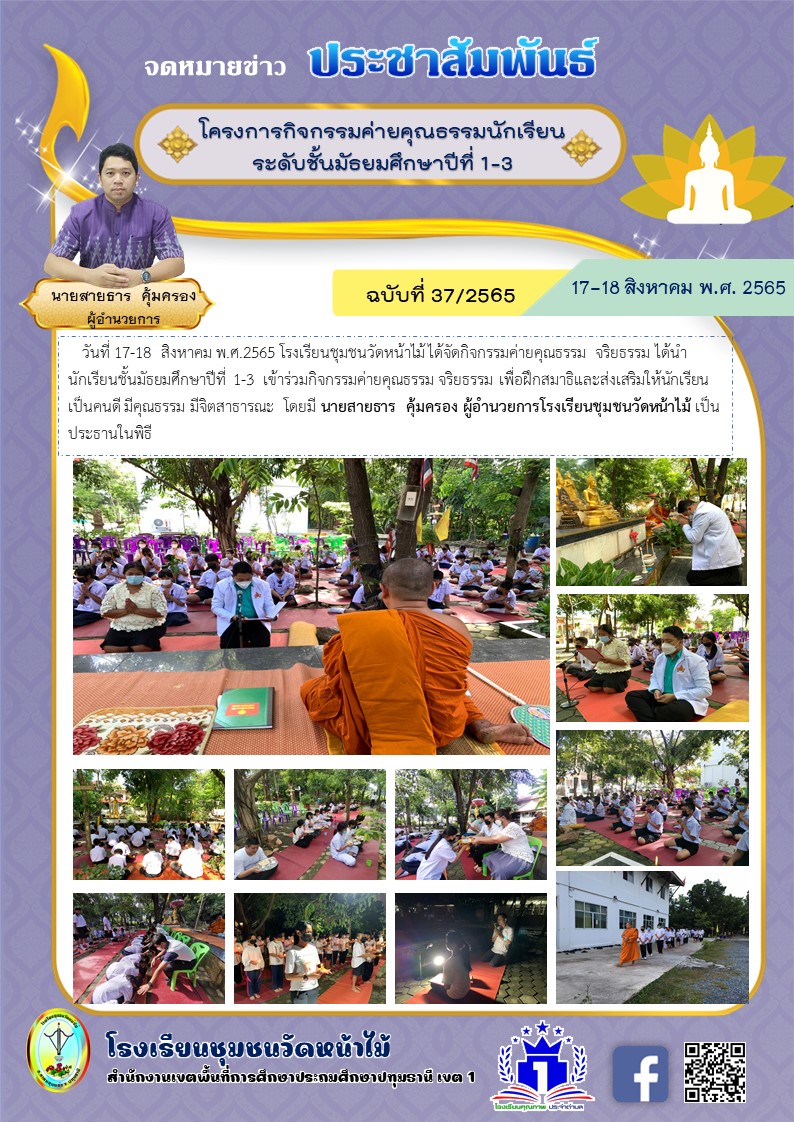 ค่ายคุณธรรมระดับชั้นมัธยมศึกษาปีที่ 1-3 วันที่ 17-18 สิงหาคม 2565 ณ วัดป่าไขแสง