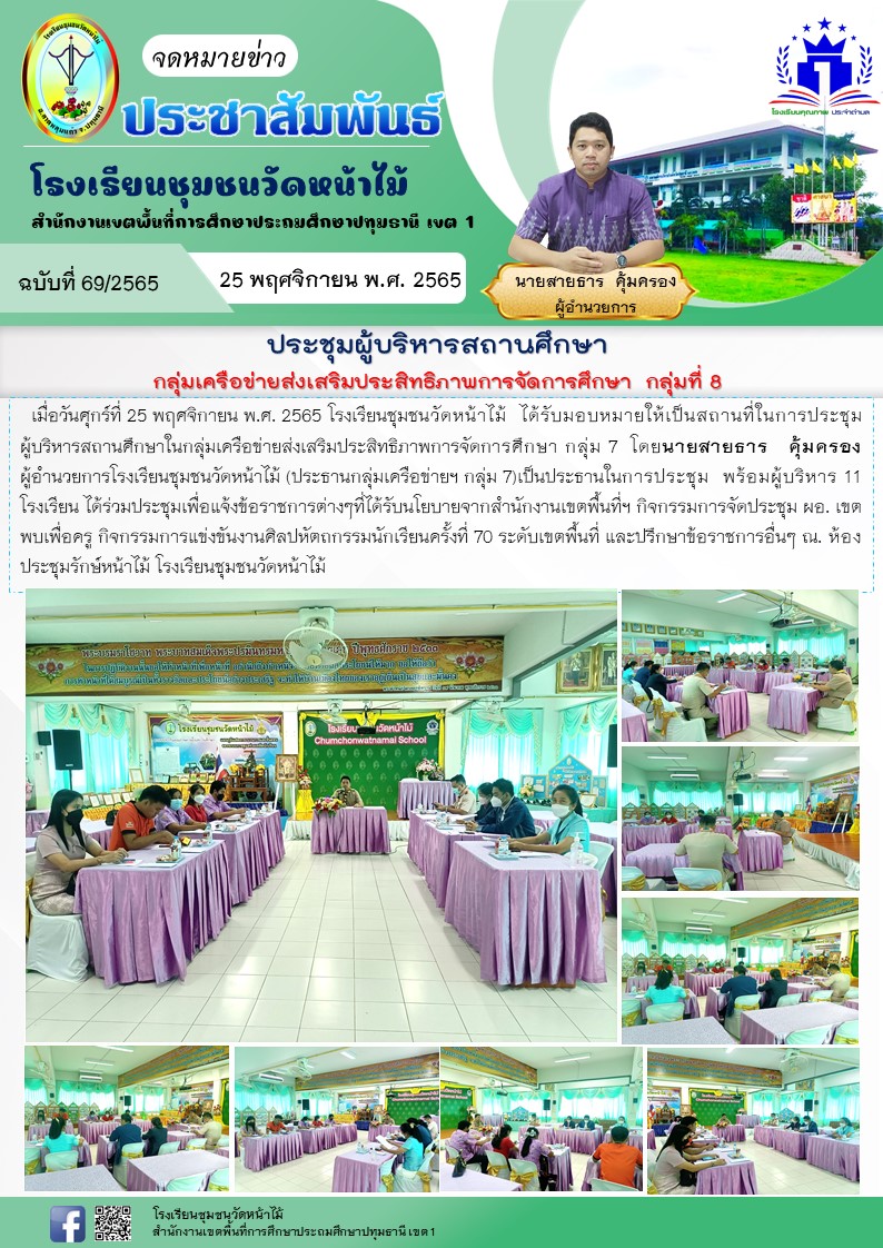 ประชุมผู้บริหารสถานศึกษา กลุ่มเครือข่ายส่งเสริมประสิทธิภาพการจัดการศึกษา กลุ่มที่ 8