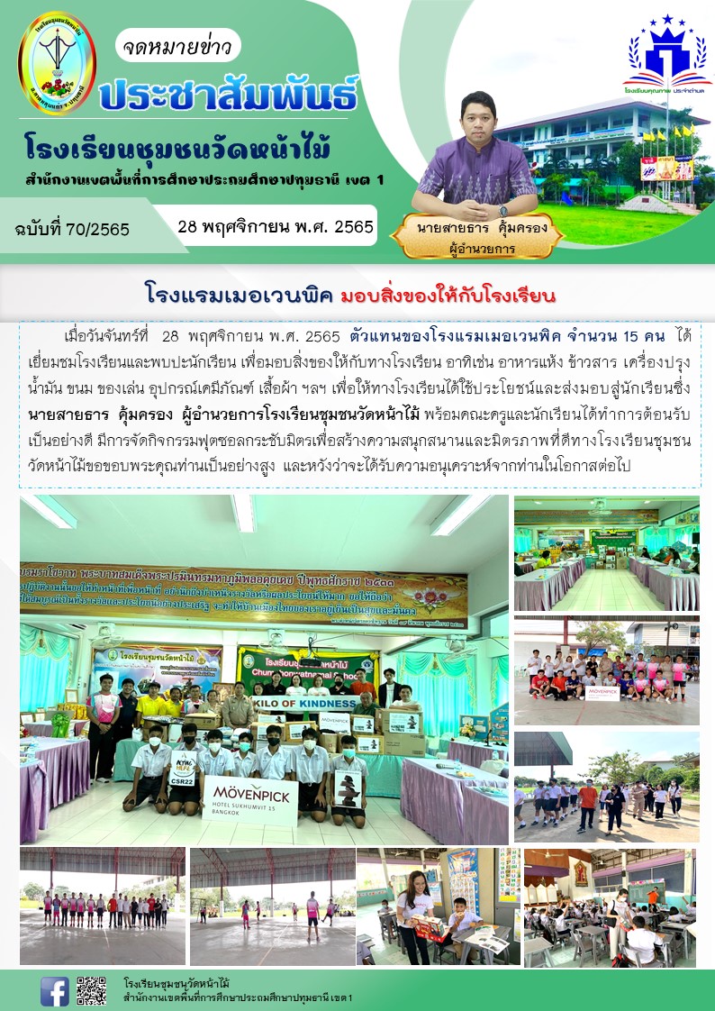 โรงแรมเมอเวนพิค มอบสิ่งของให้กับโรงเรียน