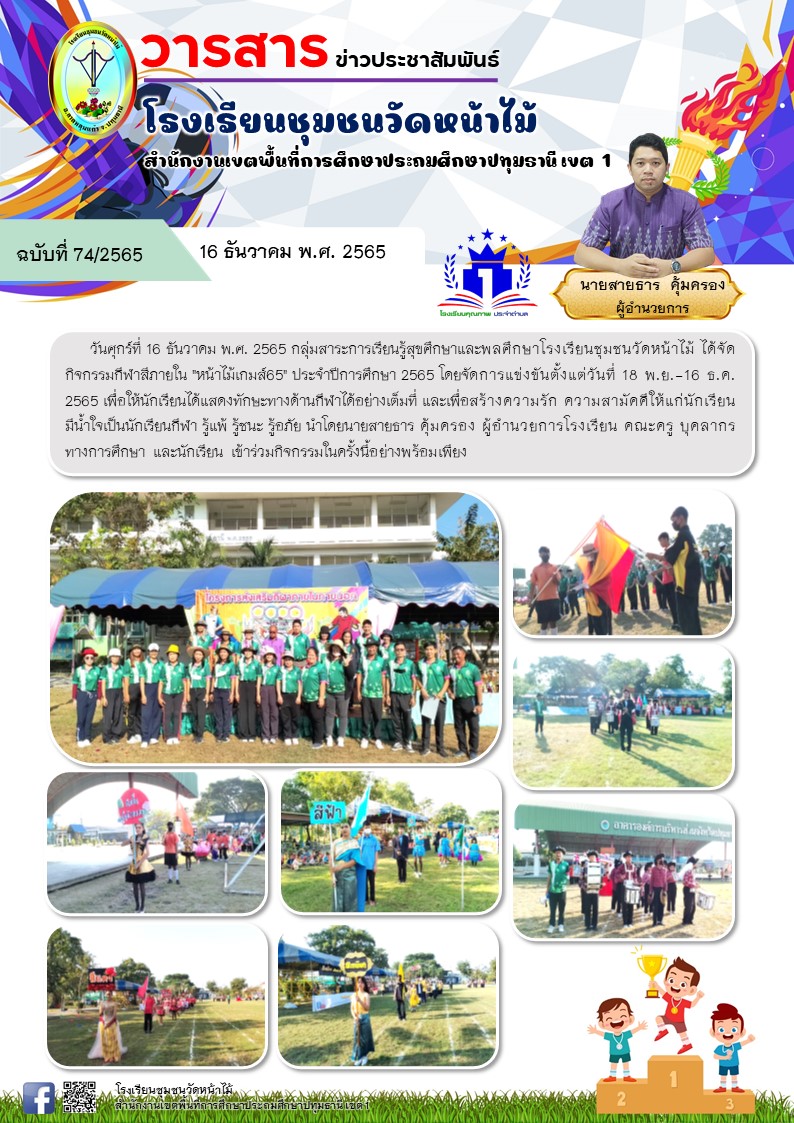 กิจกรรมกีฬาสีภายใน หน้าไม้เกมส์ 65