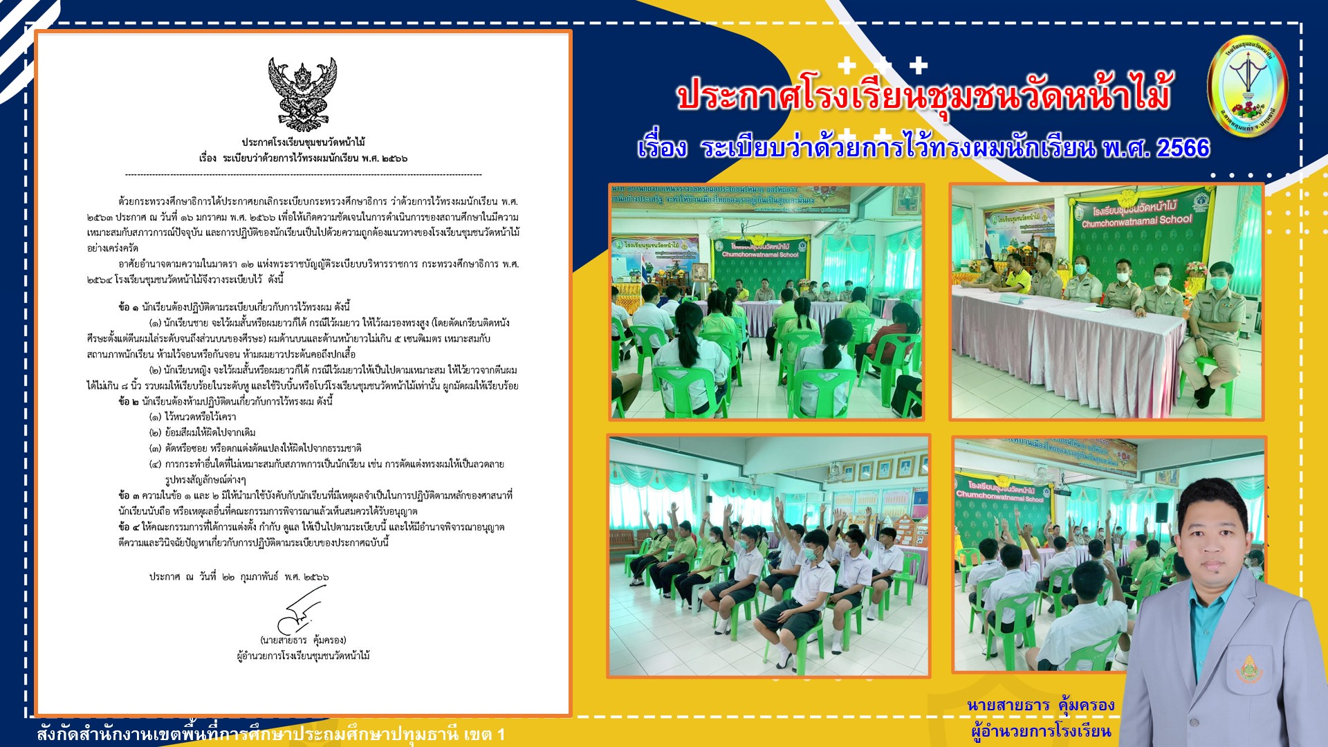 ประกาศ เรื่อง ระเบียบว่าด้วยเรื่องการไว้ทรงผม