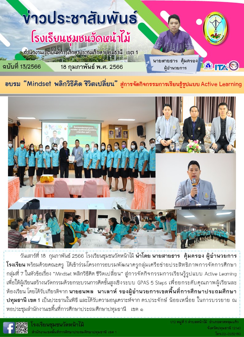 อบรม ?Mindset พลิกวิธีคิด ชีวิตเปลี่ยน? สู่การจัดกิจกรรมการเรียนรู้รูปแบบ Active Learning
