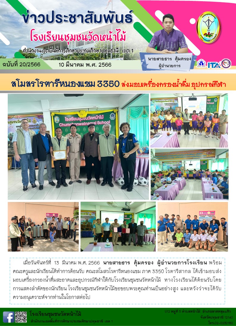 สโมสรโรตารีหนองแขม 3350 ส่งมอบเครื่องกรองน้ำดื่ม อุปกรณ์กีฬา