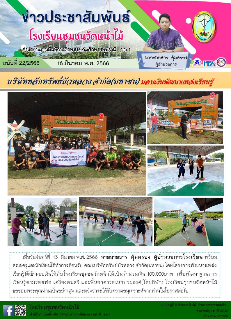 บริษัทหลักทรัพย์บัวหลวง จำกัด(มหาชน) มอบเงินพัฒนาแหล่งเรียนรู้