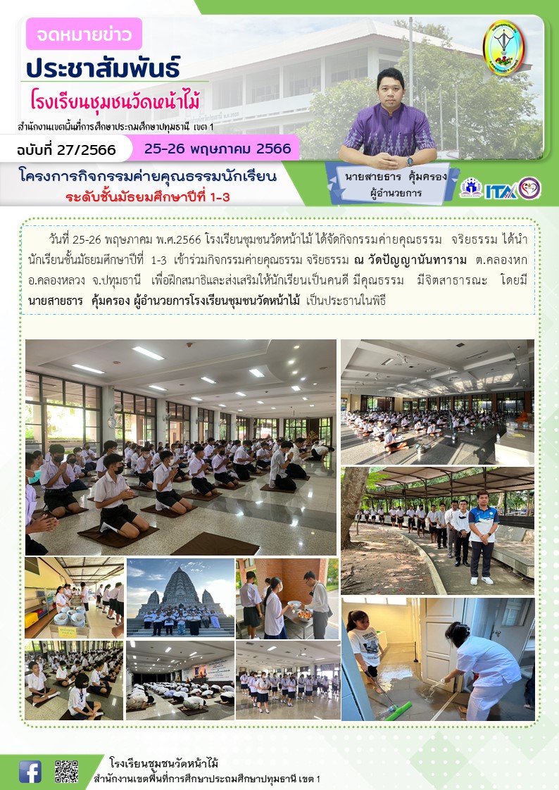 โครงการกิจกรรมค่ายคุณธรรมนักเรียน ระดับชั้นมัธยมศึกษาปีที่ 1-3
