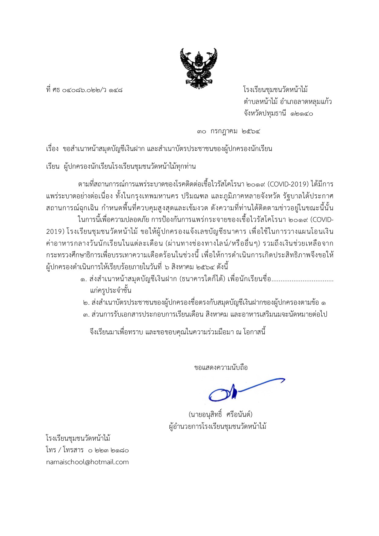 > ประกาศการใช้มาตรฐานการศึกษาปีการศึกษา 2565