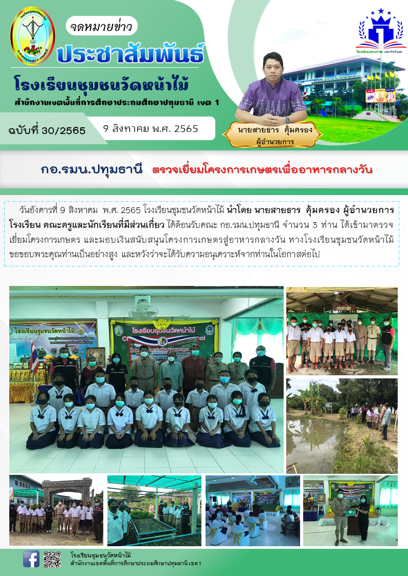 กอ.รมน.ปทุมธานี ตรวจเยี่ยมโครงการเกษตรเพื่ออาหารกลางวัน